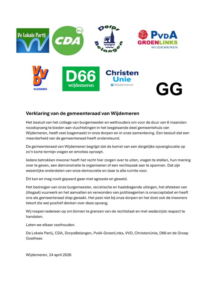 Verder spreken wij onze zorgen uit over verslavingen en kunt u het rapport met bouwkansen voor Wijdemeren lezen.