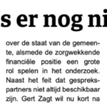 Afgelopen tijd hebben we diverse raadsinfomatiebrieven (RIB’s) van het college ontvangen omtrent de financiële situatie van de gemeente. Wij waren, net als PvdA/Groenlinks en ChristenUnie, verrast door de hoogte van de tekorten en het moment van melding aan de Raad. Wij voelden dat we de RIB’s niet stilzwijgend voor kennisgeving aan konden nemen en waren op zoek naar feitelijke verdiepende informatie. We vonden dat hier met spoed in het openbaar over moest worden gesproken in de vorm van een interpellatiedebat.