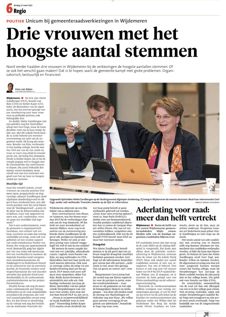 Woensdag 30 maart 2022, hebben alle 19 verkozen raadsleden van Gemeente Wijdemeren de Eed danwel Belofte afgelegd. Voor De Lokale Partij was het maar liefst 8 keer “Dat verklaar en beloof ik”.